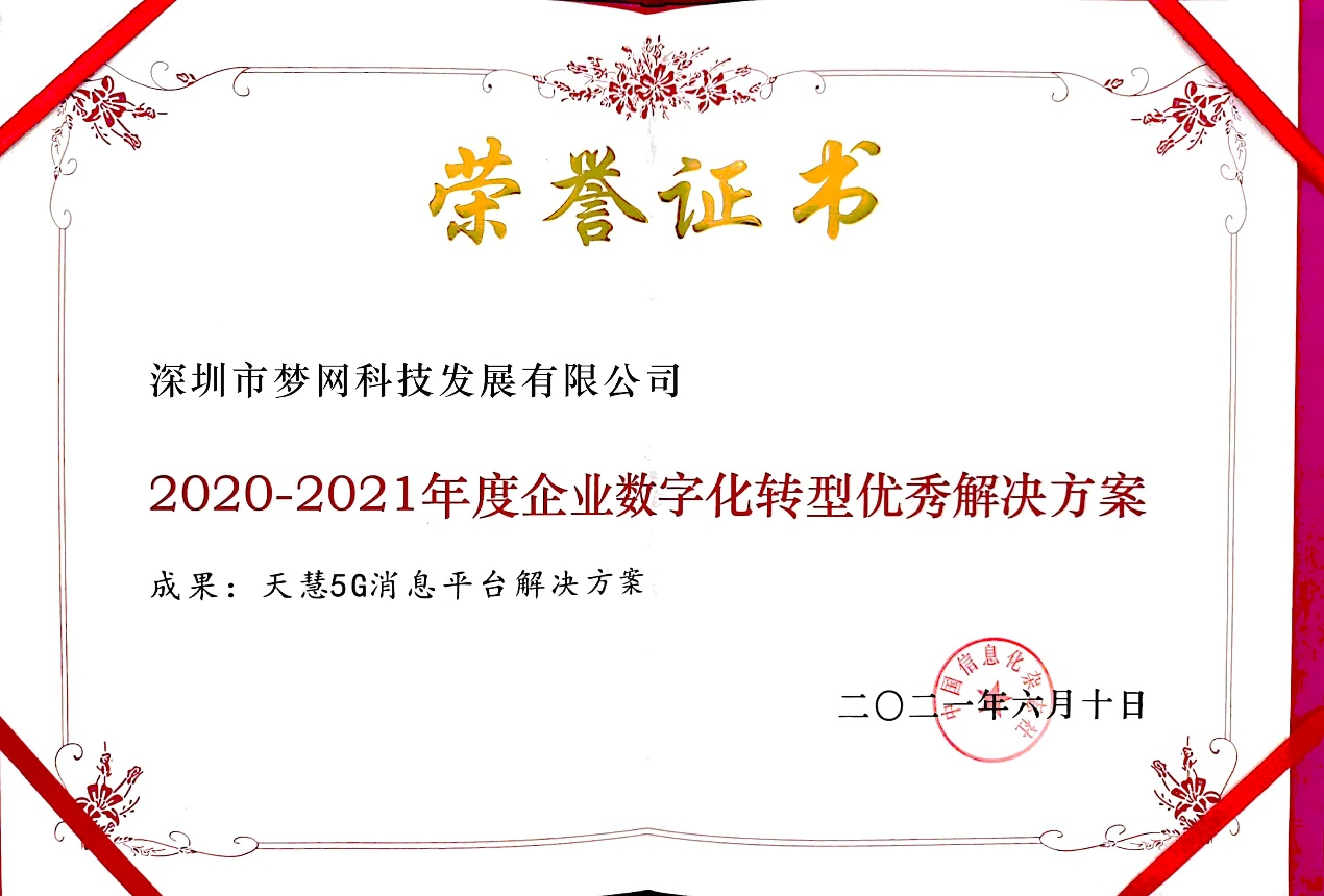 为帮助企业指明数字化转型路径,让企业在涌动的数字化浪潮中更好抓住切入点,大会同期还举办了《2020-2021年度企业数字化转型优秀案例》评选活动,对在数字化转型层面成绩斐然的企业及服务产品予以嘉奖。其中由云通信代表企业凯发k8官网科技提报的“天慧5G消息平台解决方案”成功入围优秀案例。